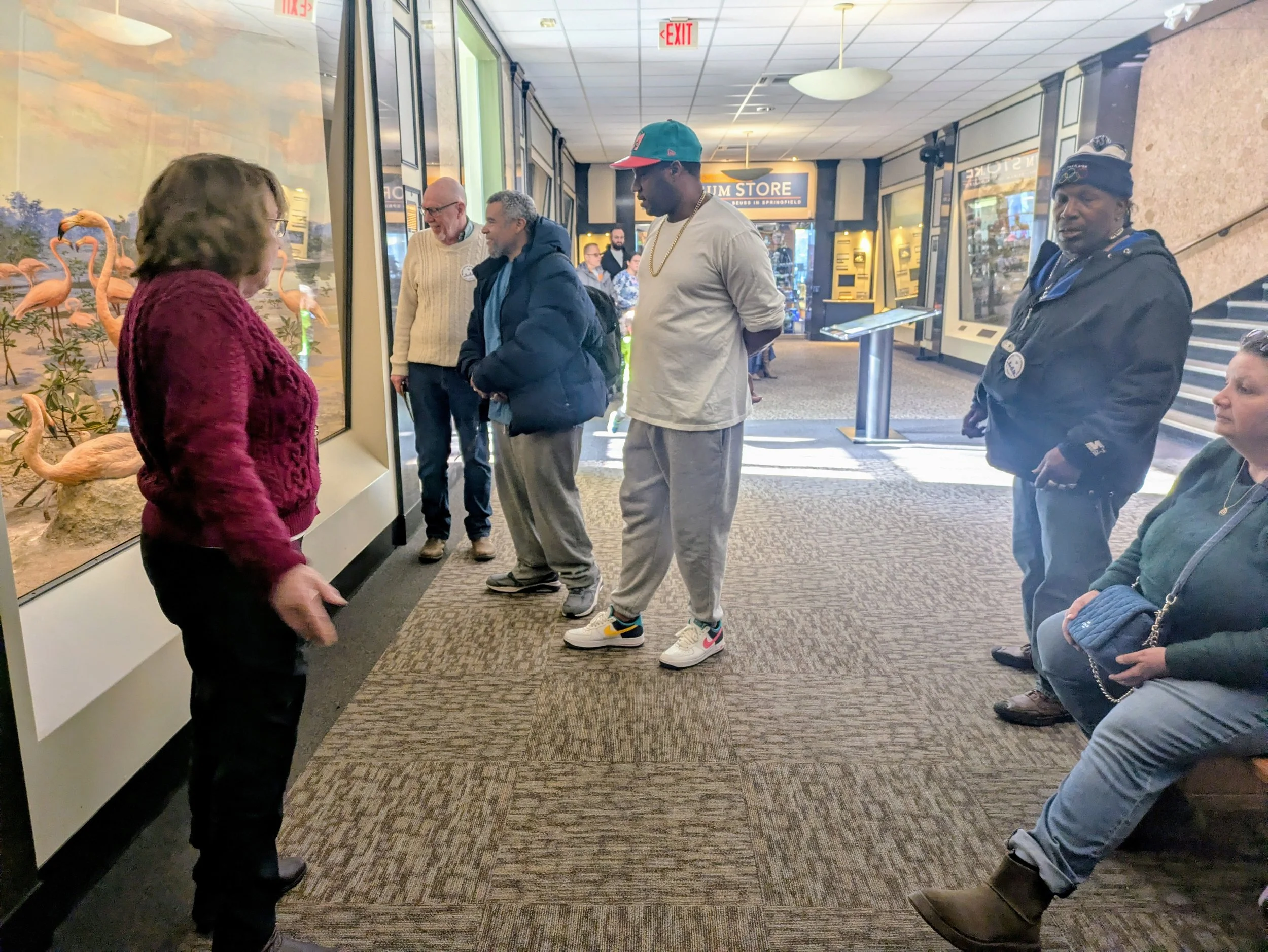 Metro Center Association's "Welcome Home" program brought lively residents from the Friends of the Homeless shelter and housed neighbors to visit the Springfield Museum of Science. physical tour of the museum’s habitat section followed a virtual tour of the universe in the Seymour Planetarium. The habitat hike sparked a robust social connection between unhoused and housed neighbors – walking, talking, picture-taking, and sharing personal experiences with real flora and fauna.